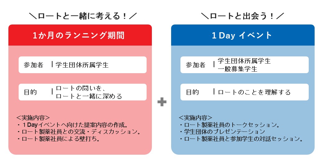 当日のみ参加の学生も交えた1Dayイベントを開催予定です。1か月の取り組みの集大成として、ロート社員や他団体とともに提案を発表し、対話を行います。 優れた提案については、実現に向けた議論が行われる可能性もあります。